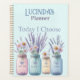 This pretty planner notebook says "Today I Choose" then it has a watercolor painting of four different canning jars filled with daisies and lavender. The jars have a heart on them and it says Faith Hope Love Joy on the jars below the heart. The background is a pale blue with darker blue polka dots. The back has the same polka dot paper. This would make a lovely gift for someone so they can keep track of all their activities and plans or to use at work. Also available in soft cover.