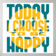 Positive affirmation Today I Choose to be Happy with smiley face on the text. Smiling yellow happy face helps you remember to be happy everyday! Spread happiness!
