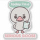 Hilarious "Today I'm A Serious Goose" sticker featuring a deadpan goose ready to stick on laptops, water bottles, notebooks, or office gear. Perfect for adding absurd humor to your daily grind—waterproof, durable, and Pureoddity weirdness guaranteed!