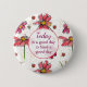 An inspirational button to have a good day decorated with bright pink daisy style wildflowers, ladybugs and honey bees drawn in pen and ink with watercolor. Great for button collections, customers and friends!