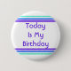 Today is My Birthday coloful stripes button pin. . Select customise to change the background colour or font.