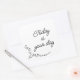 The size is perfect and the design has a softness with the beautiful flowers around the edges. The black lettering on the white background is sharp. It stands out beautifully. I love the Mixture of font styles as it catches the eye.