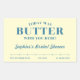Add a sweet finishing touch to your celebration with this “Today Was Butter With You Here” favor sticker. Designed in a charming butter package style, it features vintage-inspired fonts, butter yellow coloring, and soft blue accents for a playful retro look.
