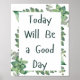 This poster has the inspirational message of, "Today will be a Good Day." This message is set on a white background with a watercolor greenery border. It is modern and pretty!