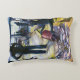 The cushion is small to medium sized. It can be washed. It is well constructed. The material used is pleasant and feels decent quality. It has a very slight plush feel which is good. It is well labelled and its care clearly stated. Theres nothing not to like about it. All in all a good item. The deduction of one star overall is due to long delays in delivery to the UK. It's not clear if this was due to Zazzle or somewhere else in the chain as I did not receive status updates of dispatch or progress. I cannot comment anymore on that other than to say that was our experience but it may not be the same for you. The printing was surprisingly close to what we were expecting. Its an art piece and on material so its hard to assess the precision of printing but it seems close to the original. The soft lines are reproductions of the original. The colour is a fair reflection of the painting. This was printed in the US and it looks like US quality. No issues.