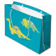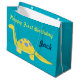 This gift bag is great for the toddler in your life. With a place to customise with his name and age, your little boy will love the simple yellow brontosaurus and green and yellow triceratops illustrations on a bright teal background.