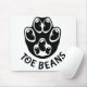 A black paw with black beans as toes, with the text, "Toe Beans," underneath the paw.