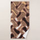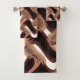 Turn your bathroom into your own personal oasis with an artist-designed towel perfect for drying you off in style. The Toffee & Caramel Towel Set designed by Artist Christina Kinetica features an abstract kinetic light painting edited extensively for design and converted to dark toffee browns with rich caramel swirls and threads of milk chocolate and sweet cream running throughout this contemporary design that you'll love. The vibrant printing on this unique towel set is designed to last! The front of this set is a polyester blend while the back is 100% pure cotton. Dimensions: includes 30" x 60" bath towel, 16" x 28" hand towel and 13" x 13" washcloth. Machine washable, tumble dry on low.