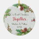 This newlyweds first Christmas milestone ornament has plenty of chic rustic flair. The word " Together" is designed in modern script typography and overlaid on the photo. The back side is with a wood base and Christmas plants - holly and pine spotted on the edge of the ornament with a joyful atmosphere of the holiday season. Easily personalise it with your memorable photo in place of the template photo, as well as the name and year on the back side. What a fantastic way to celebrate your first Christmas together!
