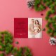 Modern photo Christmas card featuring the phrase "Together is a beautiful place to be" displayed in a handwritten gold foil script with a red background. Personalise the foil holiday card with your family name, year, and vertical photo. The card reverses to a red and white snowflake pattern.