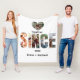 A romantic customizable design featuring couple names and a personalized year with a unique twist — both a heart-shaped frame and the word “SINCE” serve as photo placeholders, allowing you to showcase special memories in a creative way. Perfect for anniversaries, weddings, Valentine’s Day, or as a meaningful gift celebrating love and togetherness.