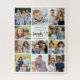 Together We Make A Family 11 Photos Heart Jigsaw Puzzle. Bring family fun and memories together with this personalised jigsaw puzzle featuring 11 of your favourite family pictures with the title TOGETHER WE MAKE A FAMILY in modern script typography accented with a heart swash and your family name. Designed with an easy-to-upload photo collage template with square and rectangle photos of various sizes in your choice of text, graphics and background colours (shown in black on white), this puzzle is both a keepsake and an activity to enjoy. Perfect for game nights, holidays or as a thoughtful gift, it’s a unique way to relive special moments piece by piece. PUZZLE OPTIONS: The sample is shown in the 16x20" size with 520 pieces; other sizes and number of pieces are available on the ordering page. ASSISTANCE: For help with design modification or transferring the design to another product, contact the designer BEFORE ORDERING via the Zazzle Chat MESSAGE tab or email makeitaboutyoustore@gmail.com.