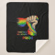 The fabric is really soft, and thick, I’m sitting here with it wrapped around me and it’s so warm! It’s really smooth and sleek on the printed side and fluffy on the back. I love it! Such good quality, so vibrant and clear, not blurry at all! See the photos I’ve attached, there’s no filters or anything on them!