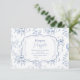 Add an elegant touch to your baby shower festivities with our Toile De Jouy Bow Baby Shower Diaper Raffle Enclosure Card. This charming card features the classic Toile De Jouy pattern, showcasing intricate pastoral scenes that bring a sense of sophistication and grace to your celebration. The delicate bow accent adds a sweet detail that perfectly complements the invitation and other themed decor.