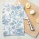 Refresh your kitchen décor with our new kitchen towel design, featuring an elegant Toile-de-Jouy Chinoiseries blue floral pattern beautifully pattern against a custom white background.