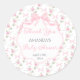 Toile De Jouy Pink Bow Girl Baby Shower Classic Round Sticker