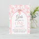 Toile de Jouy Pink Bow Girl First 1st Birthday Invitation