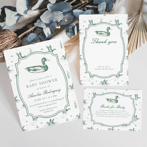 Modern Toile Green Mallard Duck Baby ShowerDesigned by S. Potter