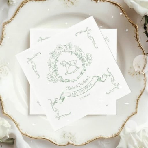 Toile de Jouy Sage green Rocking Horse Baby ShowerDesigned by Julia J