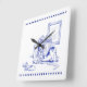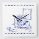 A delightful toile-inspired clock in blue willow colours featuring playful kitty cats romping in a bathroom.