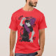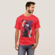 I give wanted to give this a 4 instead of a 5 because these Basic DARK T0shirts run unexpectedly SLIM or Narrow. Which is great if you do not have a potbelly, but I have a paunch. It isn't the shirt's fault that I've got a beer belly. The design and shirt itself is a quality cotton shirt. The color is more of a deep purple, but still a very pretty color. The Basic DARK T-shirts run a bit SLIMMER than the Basic Ts. The neck is a fraction narrower (or seems to be narrower) also. I'm a paunchy middle-aged woman and my neck is 12 inches (31cm) thick and the neckline fell about the same as in the photo of the man, and I had the desire to tug it a bit. So if you're a thick necked man or like loose shirts, be aware these are slimmer shirts. Once I get rid of my lockdown paunch it'll look great. The shirt washed well in cold water with no apparent bleeding. We don't have a dryer, so it hung dry. Did not shrink. Love the colors and the design. The design looks smaller on my shirt than it does on the model on-line. But still, it looks good on the shirt. The printing looks as it does on the model, just the size seems fractionally smaller. Washed garment in cold water, hung dry and design appeared unaffected.