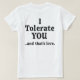 The image contains the text "I Tolerate You...and that’s love." in a straightforward, black font on a white background. The message is humourous and sarcastic, playing on the idea that even tolerance in a relationship can be seen as a form of love. It reflects a lighthearted take on relationships and compatibility.