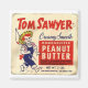 Tom Sawyer peanut butter is a vintage ad from 1945. It shows a small boy bare foot and dressed in overalls and straw hat.