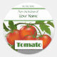 A graphic illustration of tomatoes on a canning label sticker. The sticker has text templates for your personalisation. ©2013charmainepaulson