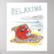 Tomato reading a book and relaxing at the beach on a sunny day.
