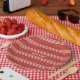 Tomato Red Stripes custom monogram paper plates