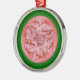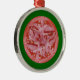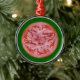 Photograph of red tomato slice on green background. An unusual ornament that may be perfect for tomato growers, chefs, or people who just like tomatoes.