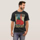 I give wanted to give this a 4 instead of a 5 because these Basic DARK T0shirts run unexpectedly SLIM or Narrow. Which is great if you do not have a potbelly, but I have a paunch. It isn't the shirt's fault that I've got a beer belly. The design and shirt itself is a quality cotton shirt. The color is more of a deep purple, but still a very pretty color. The Basic DARK T-shirts run a bit SLIMMER than the Basic Ts. The neck is a fraction narrower (or seems to be narrower) also. I'm a paunchy middle-aged woman and my neck is 12 inches (31cm) thick and the neckline fell about the same as in the photo of the man, and I had the desire to tug it a bit. So if you're a thick necked man or like loose shirts, be aware these are slimmer shirts. Once I get rid of my lockdown paunch it'll look great. The shirt washed well in cold water with no apparent bleeding. We don't have a dryer, so it hung dry. Did not shrink. Love the colors and the design. The design looks smaller on my shirt than it does on the model on-line. But still, it looks good on the shirt. The printing looks as it does on the model, just the size seems fractionally smaller. Washed garment in cold water, hung dry and design appeared unaffected.