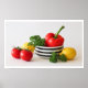 Tomatoes, Pepper, Parsley, Black Striped Bowl Poster