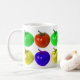 A mug with different colored tomatoes on it. You drink from it.