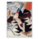 Tominomori by Utagawa Kuniyoshi. Utagawa Kuniyoshi was one of the last great masters of the Japanese ukiyo-e style of woodblock prints and painting. He is associated with the Utagawa school. The range of Kuniyoshi's preferred subjects included many genres: landscapes, beautiful women, Kabuki actors, cats, and mythical animals. He is known for depictions of the battles of samurai and legendary heroes.