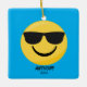 Join the emoji crazy! Personalise this ornament with your name or give as a gift. It has a bright blue background with a smiling face and black sunglasses emoji. Check out the many other emoji ornaments we offer in our store.
