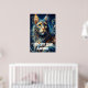 A stunning painting capturing the gaze of a cat with mesmerising blue eyes. The cat is depicted in intricate detail, showcasing its furry coat and expressive eyes. Too cute to be ignored.