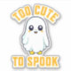 Colourful grunge Halloween "Too cute to spook" text design with cute, funny, smiley ghost decoration
