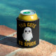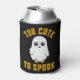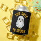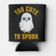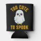 Colourful grunge Halloween "Too cute to spook" text design with cute, funny, smiley ghost decoration