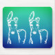 Two cute Italian Greyhound outlines in white on green and blue background.