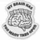 Overthinking? Burned out? Mentally done? This sarcastic brain sticker says it all — “Too Many Tabs Open.”