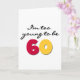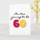 I'm too young to be 60! If the 60th birthday seemed to creep up on you, if you refuse to get any older, at least in spirit, or if you're looking for a great gift for the person turning 60 years old that can be used the entire year you'll love this black, red, and yellow text design.