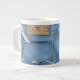 Tools Father's Mug Features back pocket on a pair of denim jeans, a wrench in the pocket, label on jeans has the word Dad made of wooden tools, and a row of tools. Perfect gift for Dad this Father's Day. This design was created using original artwork© www.delightful-doodles.com / PJG Scrapbook Heaven http://pjgscrapbookheaven.com / Cheryl Seslar Designs www.cherylseslardesigns.com (No real wood, tools or denim is on this paper product, it is artistically designed to appear this way)