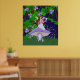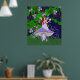 Poster with a beautiful tooth fairy princess sitting on a purple mushroom admiring the tooth she collected. Digital art created by Hinterland Harmony Art and Illustrations by KLeighE
