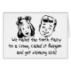 A boy and girl with words "We nailed the tooth fairy to a cross, called it religion, and got stinking rich." Great Atheist t-shirt or give it as freethinker gift on a button, mug or tote bag.