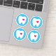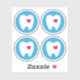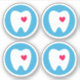 Stickers featuring a white tooth with a red heart on a blue circle. Set of four stickers.