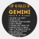 Top 10 Rules Of Gemini May 21 June 21 Zodiac Classic Round Sticker