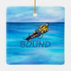 at christmass as a hanging decration for the chritmass tree.. its white porcline or cramic but very well made with added photo on one side.. also has a lovley red bag to keep it in.. execlent printed text in bold and black stands out well aganst the blue background of the photo.