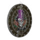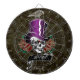 This cool dart board has a great background with a cool skull wearing a purple top hat with two roses on either side. There is a white raven perched on top of his hat and a scroll that reads, "Let it Roll." This illustration is done in a tattoo style. Perfect for a game room, a man cave as a gift or for yourself.