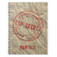 Top Secret classified round red stamp over image of wrinkled brown craft paper. Personalise with your name or message in distressed red font.